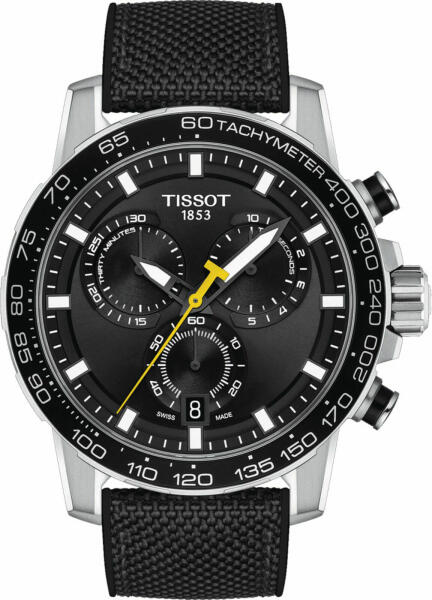 Fedezze fel a Tissot Supersport Chronograph férfi karórát, fekete számlappal és sportos textil szíjjal. A Tissot Supersport Chronograph férfi karóra a sportos elegancia és a kiváló funkcionalitás kombinációja. Az óra 316L rozsdamentes acél tokkal, karcálló zafírüveggel és fekete számlappal rendelkezik. Az alumínium lünetta gyűrű és a Superluminova anyaggal bevont mutatók és indexek biztosítják a könnyű leolvashatóságot sötétben is. Az óra svájci kvarc szerkezettel működik és vízálló 10 bar-ig. A tok átmérője 45.5 mm, vastagsága 11.9 mm, így tökéletes választás a sportos életmódhoz. Főbb jellemzők