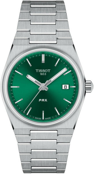 Tissot PRX 35mm unisex karóra T137.210. 11.081. 00 egy hordó formájú, ezüst színű nemesacél óratokkal, zöld analóg számlappal és ezüst nemesacél szíjjal rendelkező divatos Tissot karóra. Az óra elemmel működő kvarc szerkezettel és 10 ATM vízállósággal rendelkezik, tehát fürdésre, úszásra használható. Ez a fantasztikus óra most 169900 áron megrendelhető webshopunkban, melyre 24 hónap garanciát adunk és gyári díszdobozban szállítjuk. Ne feledd, hogy 20 ezer Ft feletti rendelésedet 2 nap alatt ingyen házhoz visszük, vagy átveheted bármelyik BL Óraszalonban is.