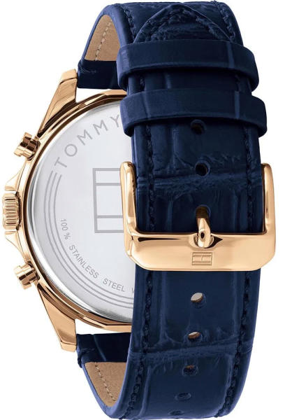 Vízállóság szűrő: mérsékelten vízálló | Szerkezet típusa: Elemmel működő quartz | Óratok anyaga: Nemesacél | Szíj: Valódi bőr | Üveg: Ásványi üveg | Vízállóság: 50 m | Óratok színe: Rosé | Számlap színe: Kék | Szíj szín: Kék | Óratok szélesség: 44 mm | Funkciók: Dátum, Nap neve kijelzés, Második időzóna kijelzés (TH1710451)