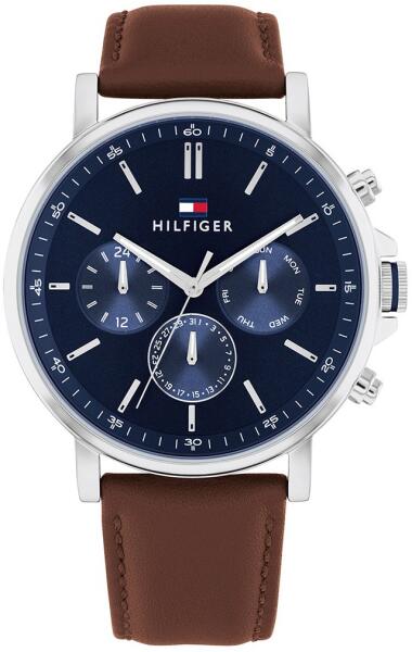 A Tommy Hilfiger Tyson férfi karóra 1710585 a modern design és a funkcionalitás tökéletes egyensúlyát kínálja. A megbízható kvarc mindig pontos időt mutat, az ásványi pedig védelmet nyújt a karcolások ellen. Az ezüst tok és a barna bőrszíj stílusos összhangban állnak egymással. 50 m vízállósága lehetővé teszi, hogy az órát vízparton vagy akár zuhanyzás közben is bátran viseld. A Tommy Hilfiger órák a sportos eleganciát képviselik, így ez a modell tökéletes választás a mindennapokhoz és az aktív életmódhoz is. Gyári díszdobozban érkezik, így ajándéknak is kitűnő. Letisztult vonalvezetésével a minimalista stílus kedvelőinek tökéletes választás.