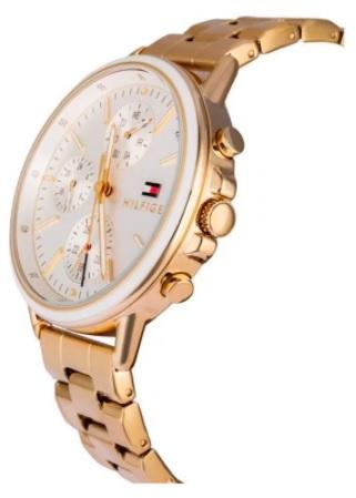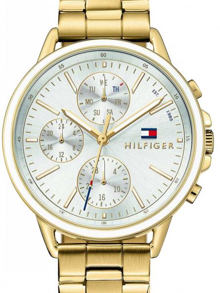Klasszikus Tommy Hilfiger karórák a Carly kollekcióból. Ideális kiegészítők nőknek , akik előnyben részesítik az analóg és kerek alakú karórákat. A belül ellenálló 11 mm magas tokban, melyet minőségi acél alkot , megbízható elemes (quartz) gépezetet talál, mely 40 mm átmérőjű számlapot működtet. A számlapot ellenálló ásványi üveg véd. A tok arany, számlap ezüst és a szíj arany színű. Anyagát tekintve acél. A karórák v ízállósága < strong> 3 ATM .   Használati utasítás csak angol nyelven van