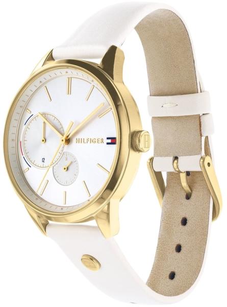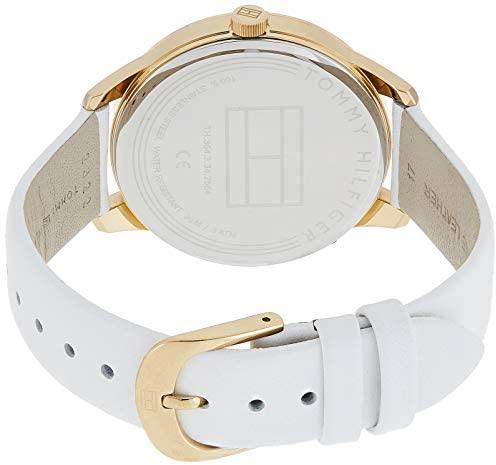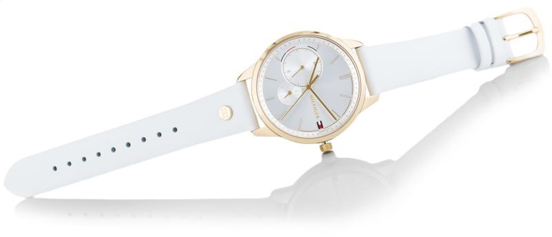 Divat  Tommy Hilfiger  karórák  a Brooke kollekcióból. Ideális kiegészítők nőknek ,   akik előnyben részesítik az analóg és kerek alakú karórákat. A belül ellenálló 8 mm magas tokban, melyet minőségi acél  alkot , megbízható elemes (quartz) gépezetet talál, mely 38 mm átmérőjű számlapot működtet. A számlapot ellenálló ásványi üveg  véd. A tok arany, számlap fehér és a szíj fehér színű. Anyagát tekintve bőr. A karórák v ízállósága  3 ATM .   Használati utasítás csak angol nyelven van Akár 80% kedvezmény több száz termékre!  Itt van a Fekete Péntek!