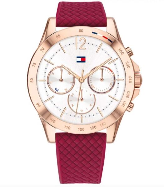 Leírás: Cél (kinek): Női Márka: Tommy Hilfiger Stílus: Sportos Vízállóság: 30 m Szíj színe: bordó Szíj anyaga: műanyag Számlap színe: fehér Számlap: Analóg Mozgás: Kvarc elem Üveg: Ásványi Test/tok: acél A tok színe: Rose gold Óra alakja: kerek Szíj szélessége: 18 mm A ház átmérője: 38 mm Garancia: 2 év Súly: 53 g