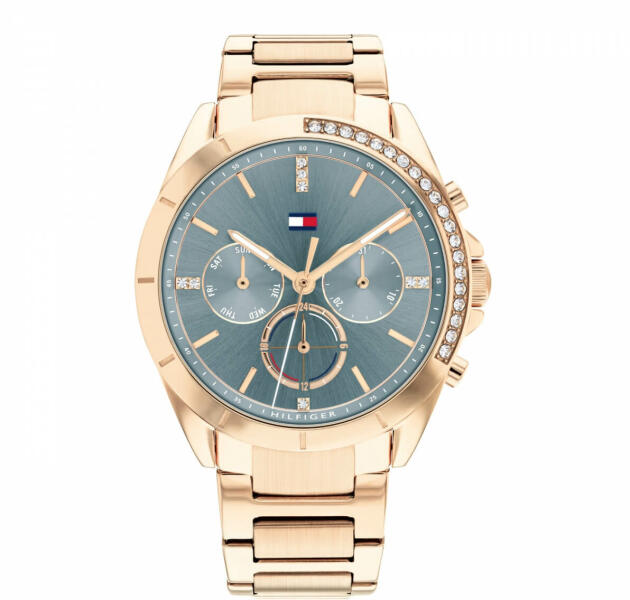 Vízállóság szűrő: mérsékelten vízálló | Szerkezet típusa: Elemmel működő quartz | Óratok anyaga: Nemesacél | Szíj: Fémszíj | Üveg: Ásványi üveg | Vízállóság: 50 m | Óratok színe: Rosé | Számlap színe: Kék | Szíj szín: Rosé | Óratok szélesség: 38 mm | Óratok vastagság: 9 mm | Szíj szélessége: 18 mm | Szíj hosszúság: 20 cm | Funkciók: Dátum, Nap neve kijelzés, Második időzóna kijelzés | Díszítés: Cirkónia kövek (TH1782386)