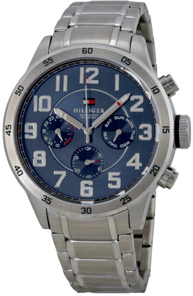 Divat  Tommy Hilfiger  karórák  a Trent kollekcióból. Ideális kiegészítők férfiaknak ,   akik előnyben részesítik az analóg és kerek alakú karórákat. A belül ellenálló 14 mm magas tokban, melyet minőségi acél  alkot , megbízható elemes (quartz) gépezetet talál, mely 46 mm átmérőjű számlapot működtet. A számlapot ellenálló ásványi üveg  véd. A tok ezüst, számlap kék és a szíj ezüst színű. Anyagát tekintve acél. A karórák v ízállósága  5 ATM .   Használati utasítás csak angol nyelven van Akár 80% kedvezmény több száz termékre!  Itt van a Fekete Péntek!