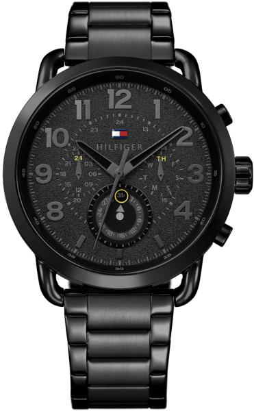 Divat Tommy Hilfiger karórák a Briggs kollekcióból. Ideális kiegészítők férfiaknak , akik előnyben részesítik az analóg és kerek alakú karórákat. A belül ellenálló 11 mm magas tokban, melyet minőségi acél alkot , megbízható elemes (quartz) gépezetet talál, mely 46 mm átmérőjű számlapot működtet. A számlapot ellenálló ásványi üveg véd. A tok fekete, számlap fekete és a szíj fekete színű. Anyagát tekintve acél. A karórák v ízállósága < strong> 5 ATM .   Használati utasítás csak angol nyelven van