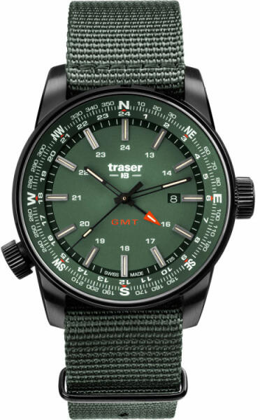 Márka: TRASER | Kollekció: P68 PATHFINDER GMT | Modell: 109035 | Garancia: 2 évek | Szín: zöld | Tok színe: fekete árnyalat | Tok anyaga: nemesacél | Táplálás: elem | Szíj anyaga: textil