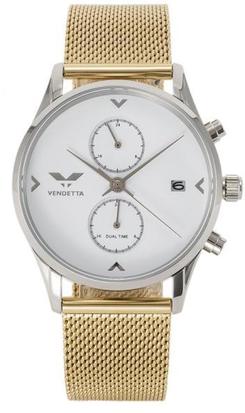 Divat  Vende tta  karórák  a Astoria kollekcióból. Ideális kiegészítők férfiaknak ,   akik előnyben részesítik az analóg és kerek alakú karórákat. A belül ellenálló 10 mm magas tokban, melyet minőségi acél  alkot , megbízható elemes (quartz) gépezetet talál, mely 38 mm átmérőjű számlapot működtet. A számlapot ellenálló ásványi üveg  véd. A tok ezüst, számlap fehér és a szíj arany színű. Anyagát tekintve acél. A karórák v ízállósága  3 ATM .   Használati utasítás csak angol nyelven van Akár 80% kedvezmény több száz termékre!  Itt van a Fekete Péntek!