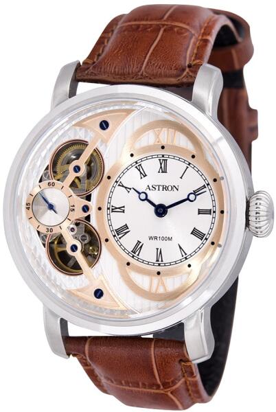 ASTRON 5522-8 férfi karóra, ezüst színű nemesacél tok, barna bőrszíj, ezüst színű számlap, keményített ásványüveg, HIBRID (mechanikus+quartz) szerkezet, 100 m (10 ATM) vízállóság (5522-8) - oranagykereskedes