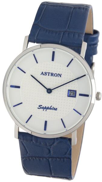 ASTRON 5526-2 férfi karóra, ezüst színű nemesacél tok, kék bőrszíj, fehér számlap, zafírüveg, quartz szerkezet, cseppmentes vízállóság (5526-2) - oranagykereskedes