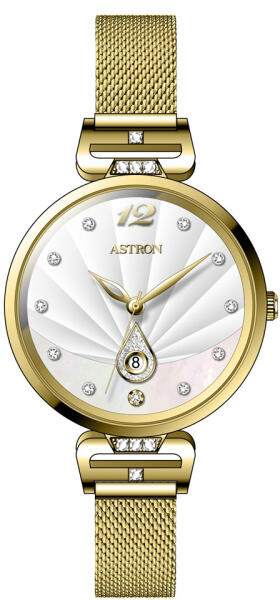ASTRON 8038-9 női karóra, ékszeróra, arany színű nemesacél tok és csat, fehér színű számlap, keményített ásványüveg, quartz szerkezet, cseppmentes vízállóság (8038-9) - oranagykereskedes