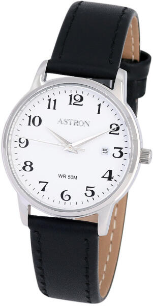 ASTRON 8048-7 női karóra, ezüst színű nemesacél tok, fekete színű bőrszíj, fehér számlap, keményített ásványüveg, quartz szerkezet, 50 m (5 ATM) vízállóság (8048-7) - oranagykereskedes
