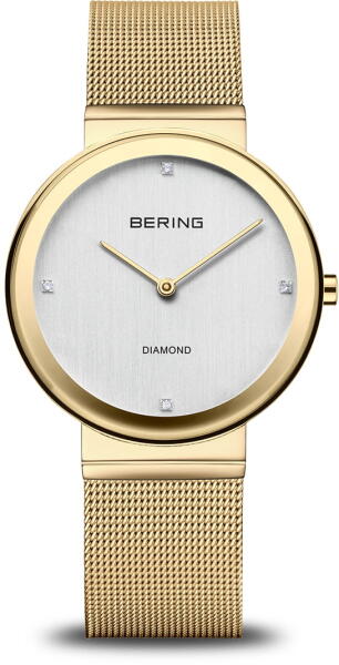A BERING 10135-334 időtlen eleganciát sugároz csendes magabiztossággal. Teljesen aranyozott dizájnját – a toktól a milánói szíjig – harmonikusan kiegyensúlyozza a szálcsiszolt ezüst számlap. Négy valódi gyémánt finom csillogást kölcsönöz, visszafogott luxust hozva a letisztult, kifinomult esztétikába. Minimalista, mégis erőteljes – ez az óra az arktikus stílus ihlette tisztaságot tükrözi. Karcsú profiljával, karcálló zafírkristályával és megbízható kvarc szerkezetével a 10135-334 ugyanolyan tartós, mint amennyire kifinomult – éjjel-nappali használatra egyaránt alkalmas.