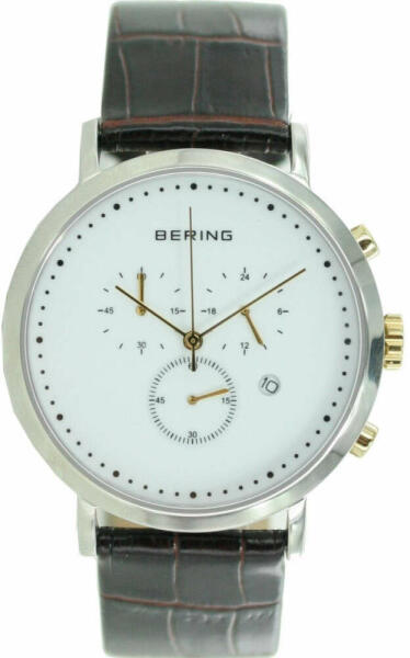 gyártó:BeringModellNr :10540-534ehemalige Listaár:*:199,00 Euroszámlap:analóg, szín: fehérTechnik:QuarzlaufwerkHáz:Rozsdame ntes acél tok ezüst poliert, átmérő: ca. 4,0 cm, vastagság: ca. 1,0 cmÓralap:rozsdamentes acél ház Herstellerlogo, karkötő:braunes Lederarmband,