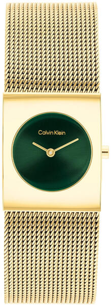 A CALVIN KLEIN CK PULSE női karóra cseppálló (3ATM), sárga arany színű nemesacél tokkal, ásványi kristályüveggel, sárga arany színű csúszós csatközéppel készül. Az órát pontos quartz óraszerkezet működteti, amely elemmel működik. Emellett a karóra szögletes tokkal és zöld színű számlappal rendelkezik.
