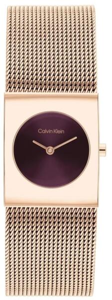 A CALVIN KLEIN CK PULSE női karóra cseppálló (3ATM), rozé arany színű nemesacél tokkal, ásványi kristályüveggel, rozé arany színű csúszós csatközéppel készül. Az órát pontos quartz óraszerkezet működteti, amely elemmel működik. Emellett a karóra szögletes tokkal és lila színű számlappal rendelkezik.