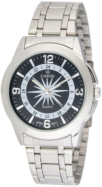 Cardy férfi karóra, ezüst színű fémtok, ezüst színű acél karcsat, fekete számlap, quartz szerkezet, cseppmentes vízállóság (2647-3)