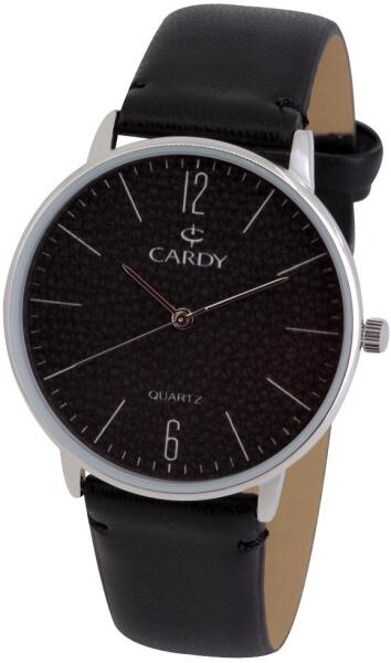 Cardy férfi karóra, ezüst színű fémtok, fekete szíj, fekete számlap, quartz szerkezet, cseppmentes vízállóság (2668-7)
