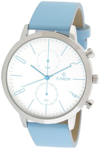 Cardy férfi karóra, ezüst színű fémtok, világoskék színű szíj, ezüst színű számlap, quartz szerkezet, cseppmentes vízállóság (2652-7)