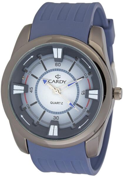 Cardy férfi karóra, fekete színű fémtok, kék színű műanyag szíj, kék színű számlap, quartz szerkezet, cseppmentes vízállóság (2652-2)