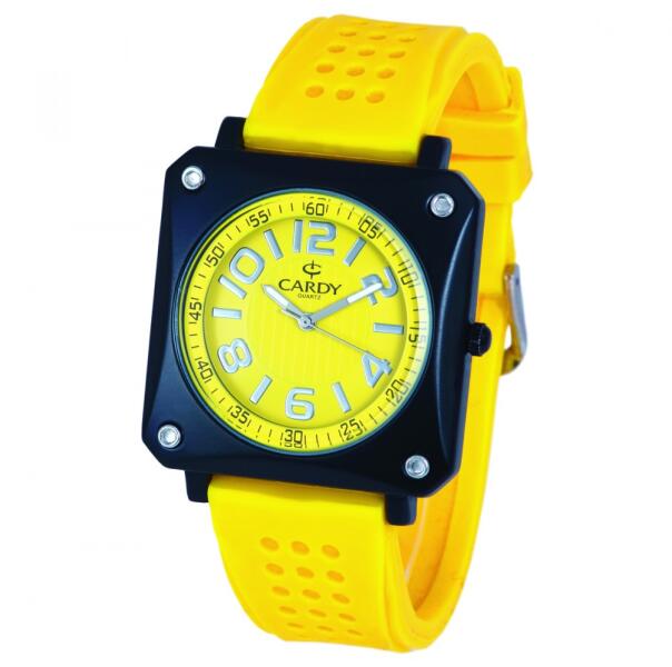 Cardy férfi karóra, fekete színű fémtok, sárga színű szilikon szíj, sárga számlap, quartz szerkezet, cseppmentes vízállóság (2700-7)