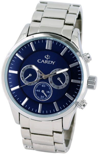 Cardy férfi karóra, quartz, ezüst színű fémtok, ezüst színű fém karcsat, kék színű számlap, cseppmentes vízállóság (2675-1)