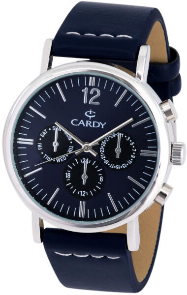 Cardy férfi szíjas karóra, quartz, ezüst színű tok, kék színű szíj, kék színű számlap (2674-3)