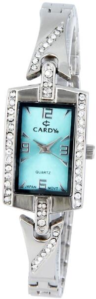 Cardy női ékszer karóra, ezüst színű tok kő díszítéssel, ezüst színű fémcsat, kék színű számlap, quartz szerkezet, cseppmentes vízállóság (2634-7)