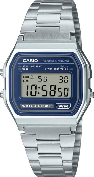 Casio A158WEA-2EF Unisex Karóra - Vintage IconicA Casio A158WEA-2EF Vintage Iconic egy klasszikus digitális karóra, amely a Casio legendás A158 sorozatának időtálló stílusát képviseli. Az 1989 óta népszerű modell egyszerű, letisztult megjelenésével és könnyű kezelhetőségével vált világszerte ismertté, így tökéletes választás mindennapi viselethez. A modell különlegessége az elegáns kék számlap , amely modern megjelenést kölcsönöz a klasszikus vintage dizájnnak. Az ezüst színű fém tok és rozsdamentes acél szíj stílusos, mégis visszafogott megjelenést biztosít, amely férfiak és nők számára egyaránt ideális. A praktikus digitális kijelző könnyen leolvasható, a beépített LED világítás pedig sötétben is jól láthatóvá teszi az időt. A karóra stopperrel, napi ébresztéssel és automatikus naptárral is rendelkezik, így nemcsak stílusos, hanem hasznos kiegészítő is a mindennapokban. Főbb jellemzők