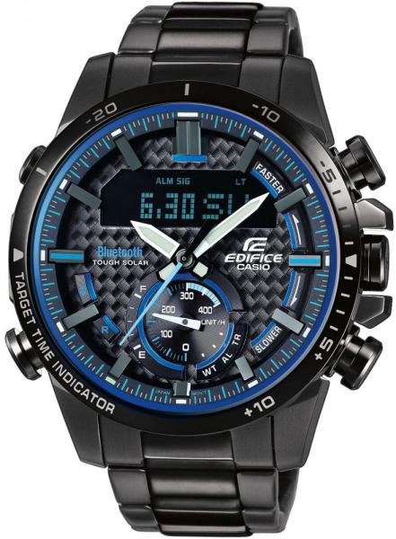 Bluetooth: Az óra képes Bluetooth kapcsolatot létesíteni okostelefonokkal ( IOS vagy Android rendszerű, ver 4.0 SMART Bluetooth követelmény ). A pontos időt a GSM rendszeridejéhez szinkronizálja. Az óra beállítása a telefon keresztül is történhet. Mutató korrekció: A gombnyomásra, a mutatók mozognak, és lehetővé teszik a stopper és a dátum szabad láthatóságát. Fekete ion bevonatú előlap: IgenDupla LED világítás: LED fényforrás segítségével történik a számlap megvilágítása. 1/1000 stopper 200: A mérési egység 1/1000mp, maximális mérési idő 24 óra . Célidő: Az órán a mérés megkezdése előtt beállíthatja a célidőt. Mérés közben a célidő elérésekor az óra hanggal jelez. Visszaszámláló riasztás: 1/10 másodperc, maximum 24 óra visszaszámlálandó időtartamVilágidő: Az óra kijelzi a világ nagyobb városainak, speciális területeinek pontos idejét. 5 egymástól független napi ébresztés: Az órán 5 ébresztési időpontot állíthat be. Teljesen automatikus naptár: Az óra a napot automatikusan a hónapoknak, éveknek esetlegesen a szökőéveknek is megfelelően lépteti. Nap neve jelzése:A kijelzőn megjelenik a nap angol nyelvű rövidítése. INVERZ SZÁMLAP: Az óra digitális kijelzőjén a számok sötét alapon inverz kijelzéssel jelennek meg. Solar funkció: Az óra beépített napelem segítségével működik, egyéb elem nem szükséges hozzá. Egy teljes feltöltés után akár 6 hónapig is működőképes. Merülő akkumulátor figyelmeztetés: Ha az akkumulátor feszültsége lecsökken az óra figyelmeztető jelzést ad. Óránkénti időjelzés: VanEdzett kristályüveg: Az edzett kristályüveg kevésbé karcolódik. Nemesacél tokozás: A tok nemesacélból készült. 10 BAR nyomásig vízálló: Az óra 10 BAR nyomásig ellenáll a víz nyomásának. Úszni, fürdeni nyugodtan lehet az órában. Nemesacél fémcsat tömör szemekből: Az óra csatja tartós nemesacélból készült, ami tömör szemekből áll. Nyitáskönnyített csatközép:A csat nyitása a csatközép két oldalán található gomb nyomásával könnyebbé válik. Mobile Link funkció: VanMéretek: 53,5 × 49,2 × 13.7mm Súly: 168 grammCsomagolás: Gyári doboz