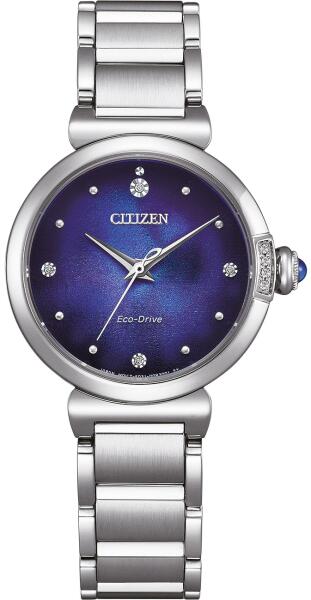 Citizen Elegance Lady női karóra 5 BAR nyomásig alapszinten vízálló, ezüstszínű nemesacél tokkal, zafír kristályüveggel, ragyogó kék színű számlappal, nyitáskönnyített békazáras csatközéppel készül. Az órát az Eco-Drive rendszernek köszönhetően kizárólag a fényből nyert energia működteti. A teljesen feltöltött kondenzátorral kb. 6 hónapig működik az óra. Különlegessége, hogy ezt a darabot valódi gyémánt díszíti.
