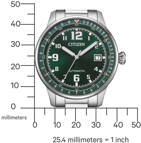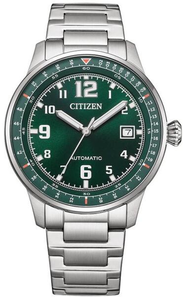 Citizen NJ0190-51X Férfi Karóra – Urban Military AutomaticA Citizen NJ0190-51X modell a modern urban military stílus és a klasszikus automata szerkezet tökéletes ötvözete. Letisztult kialakítása és zöld számlapja karakteres megjelenést biztosít a mindennapokban. A japán gyártmányú mechanikus 8210-C0A kaliber megbízható működést kínál, akár 42 órás járástartalékkal . A dátumkijelző, a pontos arab számokkal és vonalkákkal jelölt indexek, valamint a kristályüveg a funkcionalitás és elegancia kombinációját nyújtják. Főbb jellemzők – Citizen NJ0190-51X