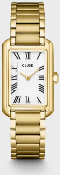 Cluse Belisenna női karóra CW15001. Az új, téglalap alakú Belisenna női karóra időtlen eleganciát áraszt. 21 mm-es arany színű tokkal, fehér vintage megjelenésű számlappal és arany színű, 14 mm-es 3 lengőkaros rozsdamentes acél szíjjal. A klasszikus báj és a kifinomultság tökéletes keveréke minden alkalomra. Bármilyen 14 mm-es szíjjal könnyedén testreszabhatja órája megjelenését. A szíj méretét saját maga állíthatja be.