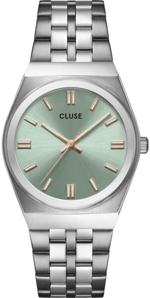 A Cluse Retro 70's női karóra CW35103 karóra házának anyaga nemesacél, színe ezüst, a szíjának anyaga nemesacél és a színe ezüst. Az óratok átmérője 33 mm, alakja kerek. A karóra üvege kristály (nehezen karcolható), szerkezete kvarc és vízállósága 5 atm (50m) (erősen cseppálló).