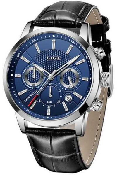 Fekete bőrszíjas, kék számlapos, férfi karóra, dátum kijelzéssel. Sportos és elegáns öltözethez is tökéletes kiegészítő. Prémium minőség. TULAJDONSÁGOK ásványi kristályüveg quartz szerkezet a Chronograph csak dísz jól látható számlapMÉRETEKház szélessége: 4,3 cm ház magassága: 1,2 cm szíj hossza: 25 cm szíj szélessége: 2 cm