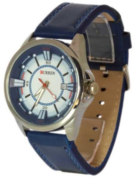 Nemesacél tokozású Curren M7015G karóra , dátum kijelzéssel, kék bőr szíjjal. Sportos és elegáns öltözethez. TULAJDONSÁGOKrozsdamentes acél tok, fekete bőrszíj, stabil szerkezettel ásványi kristályüveg quartz szerkezet dátum kijelzésMÉRETEKház szélessége: 4,3 cm ház magassága: 1,1 cm szíj hossza: 24,5 cm szíj szélessége: 2,2 cm