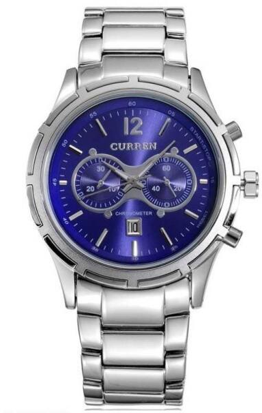 Nemesacél tokozású Curren karóra , dátum kijelzéssel, nemesacél szíjjal és tokozással. Sportos és elegáns öltözködéshez. TULAJDONSÁGOKrozsdamentes acél tok és szíj, stabil szerkezettel ásványi kristályüveg quartz szerkezet dátum kijelzés a chronograph csak díszMÉRETEKház szélessége: 4,5 cm ház magassága: 1,2 cm szíj hossza:  mm szíj szélessége: 2,4 cm
