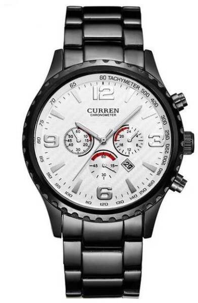Egy igazán elegáns, fekete szíjas, törtfehér számlapos, férfi karóra, dísz Chronograp-al a számlapján, másodpercmutatóval, dátum kijelzéssel. Sportos és elegáns öltözethez is tökéletes kiegészítő. TULAJDONSÁGOK ásványi kristályüveg quartz szerkezet a Chronograph csak dísz jól látható számlapMÉRETEKház szélessége: 4,5 cm ház magassága: 1,2 cm szíj hossza:  állítható hossz szíj szélessége: 2 cm