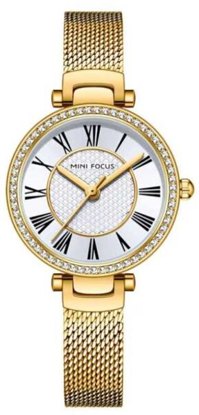 Ezüst számlapos női karóra, arany színű tokkal, arany nemesacél szíjjal, számlapja strasszokkal, díszítve. Mindennapi használatra. TULAJDONSÁGOK rozsdamentes acél hátlap ásványi kristályüveg kvarc szerkezet könnyen állítható méretMÉRETEKház szélessége: 2,8 cm ház magassága: 0,8 cm szíj hossza:  22 cm (állítható hossz) szíj szélessége: 1 cm