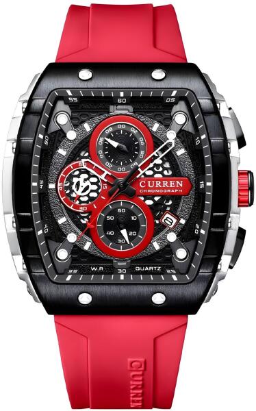 A Curren RO-35240 karóra uraknak a dinamika és az erő szimbóluma. A különleges számlap bonyolult kronográf mutatókkal sportos és egyben kifinomult megjelenést kölcsönöz. A szilikon szíj kényelmet biztosít hosszú távú viselés esetén is. Tökéletes olyan urak számára, akik kifejező stílust és funkcionalitást keresnek egyben. A karóra kronográffal és dátummal rendelkezik.