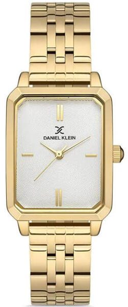 A Daniel Klein Premium női karóra DK. 1.13126-2 karóra házának anyaga fémötvözet, színe arany, a szíjának anyaga nemesacél és a színe arany. Az óratok átmérője 37 mm, alakja négyszögű. A karóra üvege kristály (nehezen karcolható), szerkezete kvarc és vízállósága 3 atm (30m) (cseppmentes).