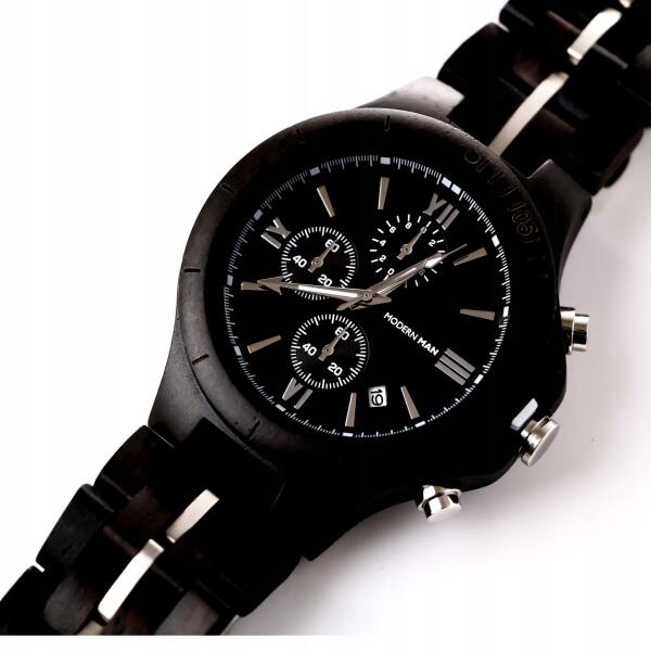 Férfi karóra elegáns fekete ezüst Fából Készült Üzleti+ajándék doboz
