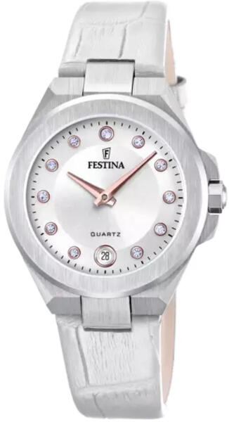 Festina Lotus SA. (Festina) FESTINA - F20701/1 női óra gyöngyház számlappal, cirkónia kövekkel fehér bőrszíjjal (F20701_1)
