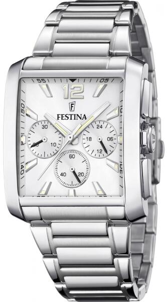 A Festina On The Square kollekció a márka egyik legkreatívabb és legmodernebb sorozata, amely a geometrikus formák és a letisztult dizájn kedvelőit célozza meg. Ez a kollekció a négyzetes tokformával tűnik ki, amely egyedi és feltűnő megjelenést biztosít viselőjének, miközben megőrzi a Festina órákra jellemző eleganciát és minőséget. Az On The Square kollekció órái modern, mégis visszafogott stílust képviselnek, ideálisak azok számára, akik szeretik a különleges, nem mindennapi dizájnelemeket. A rozsdamentes acél tokok és a karcálló üveg garantálják a tartósságot, míg a bőr vagy fémszíjak tökéletesen illenek a letisztult megjelenéshez. A számlapok gyakran minimalista stílusúak, ami fokozza az óra eleganciáját és kortalan stílusát. Ez a kollekció tökéletes választás mindazoknak, akik szeretnének kitűnni egyedi formavilággal, anélkül hogy lemondanának a minőségről és a funkcionalitásról. A Festina On The Square kollekció különleges dizájnja és időtálló megjelenése biztosítja, hogy ezek az órák bármilyen alkalomra elegáns és stílusos kiegészítők legyenek.