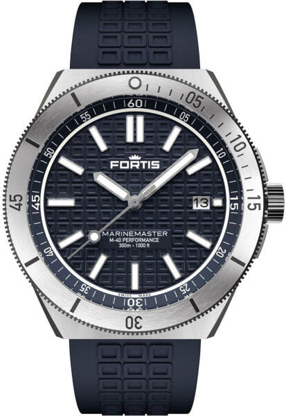 A Fortis Marinemaster M-40 Gravity Black férfi karóra F8120026 karóra házának anyaga Nemesacél, színe Ezüst, a szíjának anyaga Szilikon és a színe Fekete. Az óratok átmérője 40 mm, alakja Kerek. A karóra üvege Zafír (karcolásmentes), szerkezete Automata és vízállósága 30 atm (300m) (búvárkodásra is alkalmas).