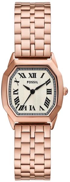 A Fossil Harlow ES5386 női karóra egy klasszikus és nőies darab, amely vintage ihletésű, mégis modern dizájnt kínál. A 27 mm-es rózsaarany tónusú rozsdamentes acél tok elegáns, kompakt méretű – kényelmes a kisebb csuklón is. A krémszínű, texturált számlap finoman játszik a fényekkel, miközben a három mutatós kvarc szerkezet egyszerű, de megbízható időmérést biztosít. Az ásványi kristályüveg (mineral crystal) védi az órát a karcoktól, a kétgombos hajtogatható csat pedig stabil záródást kínál. A 16 mm-es pánt kompatibilitás lehetővé teszi, hogy a későbbiekben más szíjjal is variáld az órádat. A vízállóság 3 ATM, azaz kézmosásnál vagy esőben is bátran viselhető, de nem alkalmas úszáshoz. Ez az óra különösen ajánlott azoknak, akik egy elegáns, letisztult és időtálló női karórát keresnek, amely kiegészíti mindennapi stílusukat, de elegánsabb öltözékhez is illik.