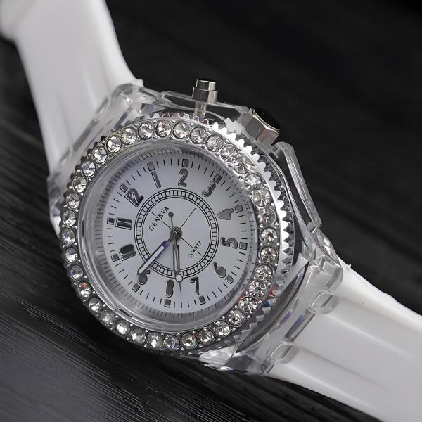 Alávilágított, szilikon LU-4684 karóra verhetetlen áron. Ha megnyomja az oldalán lévő gombot, a karóra számlapja színesen villogni fog. Nagyon künnyű és cirkónia ékkövekkel díszített. A karóra csak cseppálló, ne érintkezzen vízzel. A víz miatt károsodott karórára nem vonatkozik a jótállás.