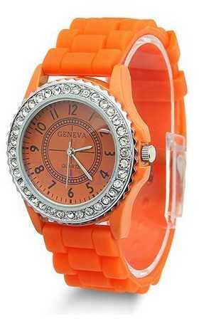 Geneva szilikon szíjas karóra. Narancs 47oc