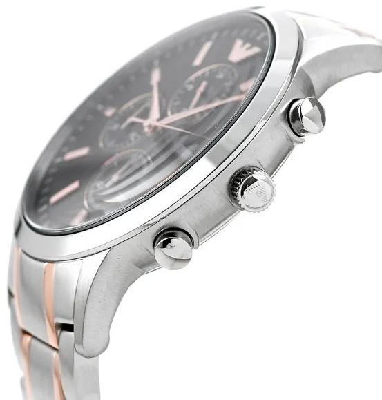 Divat Armani (Emporio Armani) karórák a Renato kollekcióból. Ideális kiegészítők férfiaknak , akik előnyben részesítik az analóg és kerek alakú karórákat. A belül ellenálló 11 mm magas tokban, melyet minőségi acél alkot , megbízható elemes (quartz) gépezetet talál, mely 43 mm átmérőjű számlapot működtet. A számlapot ellenálló ásványi üveg véd. A tok ezüst, számlap fekete és a szíj ezüst színű. Anyagát tekintve acél. A karórák v ízállósága < strong> 5 ATM .   Használati utasítás csak angol nyelven van