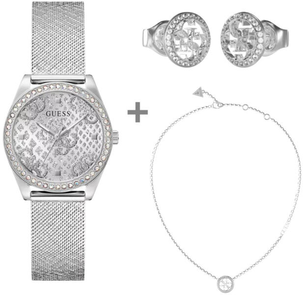 GUESS női karóra, nyaklánc és fülbevaló szett JUBE02136JWRHT+JUBN02141JWRHT+GW0748L1